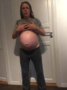 Den sista veckan före födseln är magen helt spänd