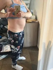 Här är magen några dagar efter födseln. Man kan se att magen hänger och jag ser fortfarande gravid ut.