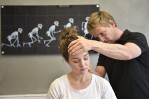 Övningen ”Spiderman” stärker nackens framsida som ofta är svag vid nackproblem. Samtidigt ger den en stretch i nackens baksida och påverkar ”muskelstrumporna” (fascian).