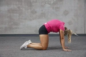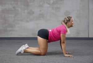 Cat/ cow: Svanka och se uppåt (cow), och krumma ryggen och se nedåt(cat). Ökar flexibiliteten i ryggen. Bra övning om skoliosen är funktionell och det är stelheter i ryggen som gör att det blir snedheter.
